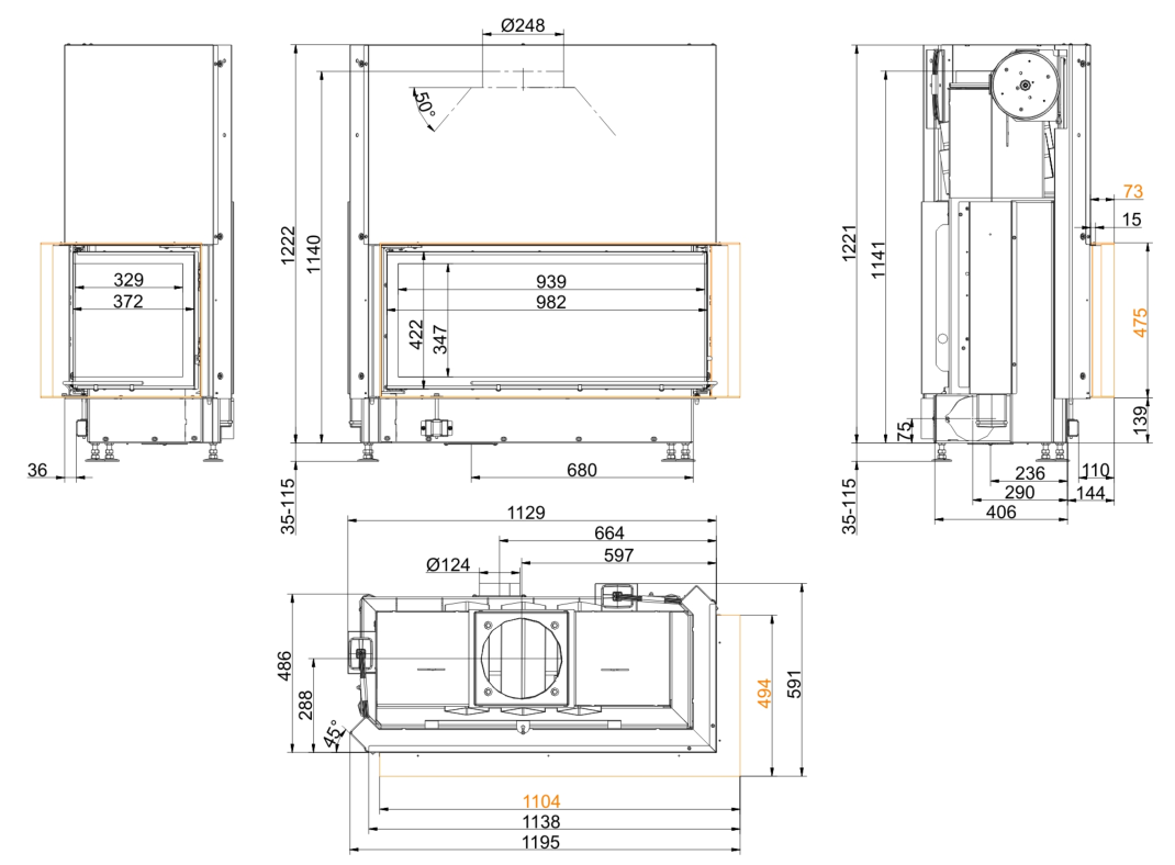 Каминная топка Brunner Architecture 45/101/40 Right