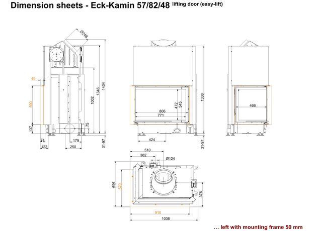 Каминная топка Brunner Eck Lift 57/82/48 Right