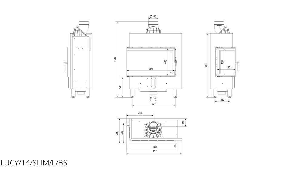 Каминная топка Kratki Lucy 14 L/BS Slim