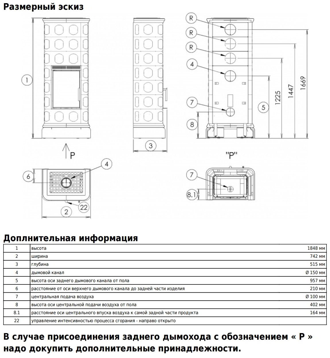 Диаметр дымохода: