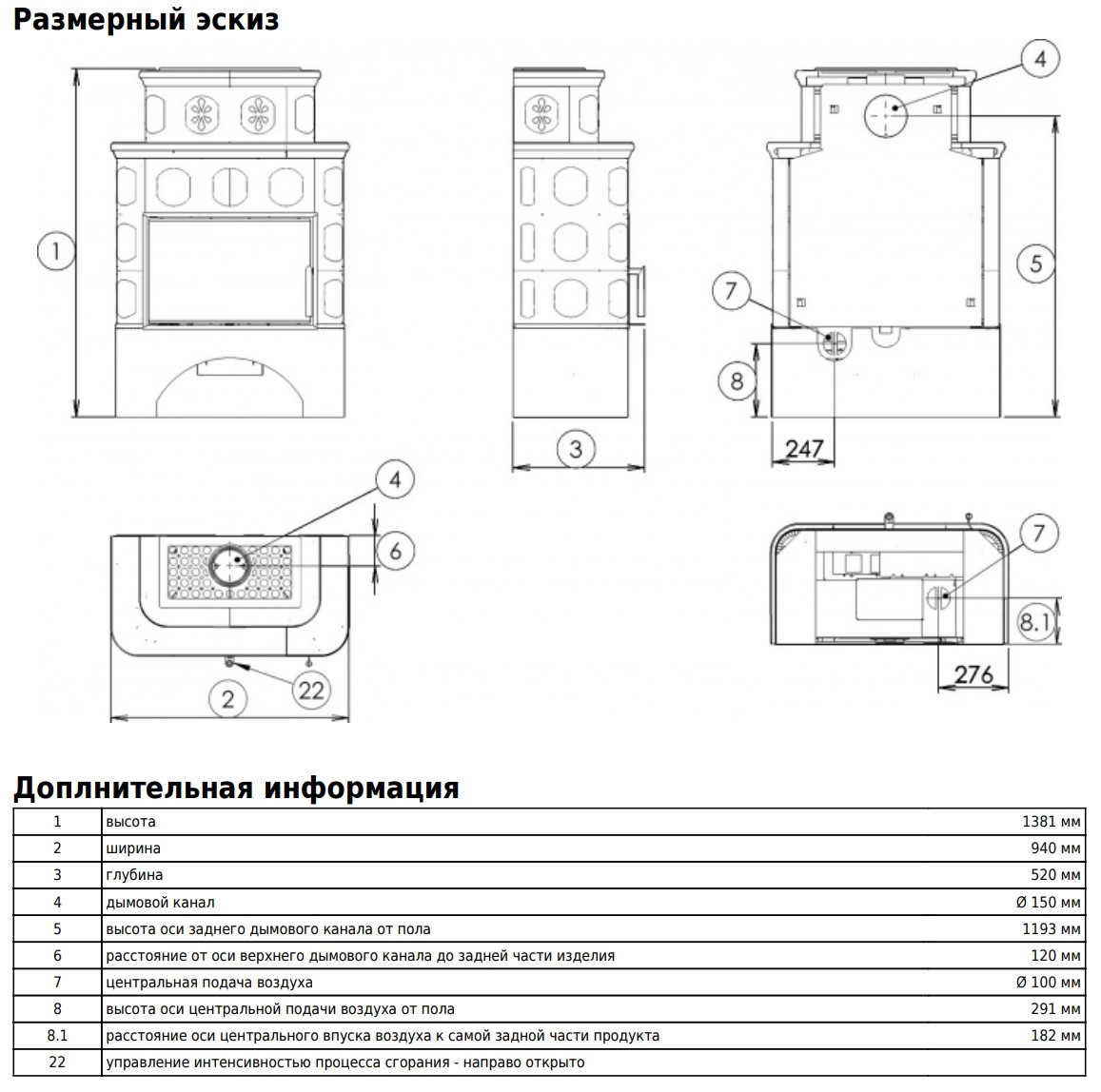 Диаметр дымохода: