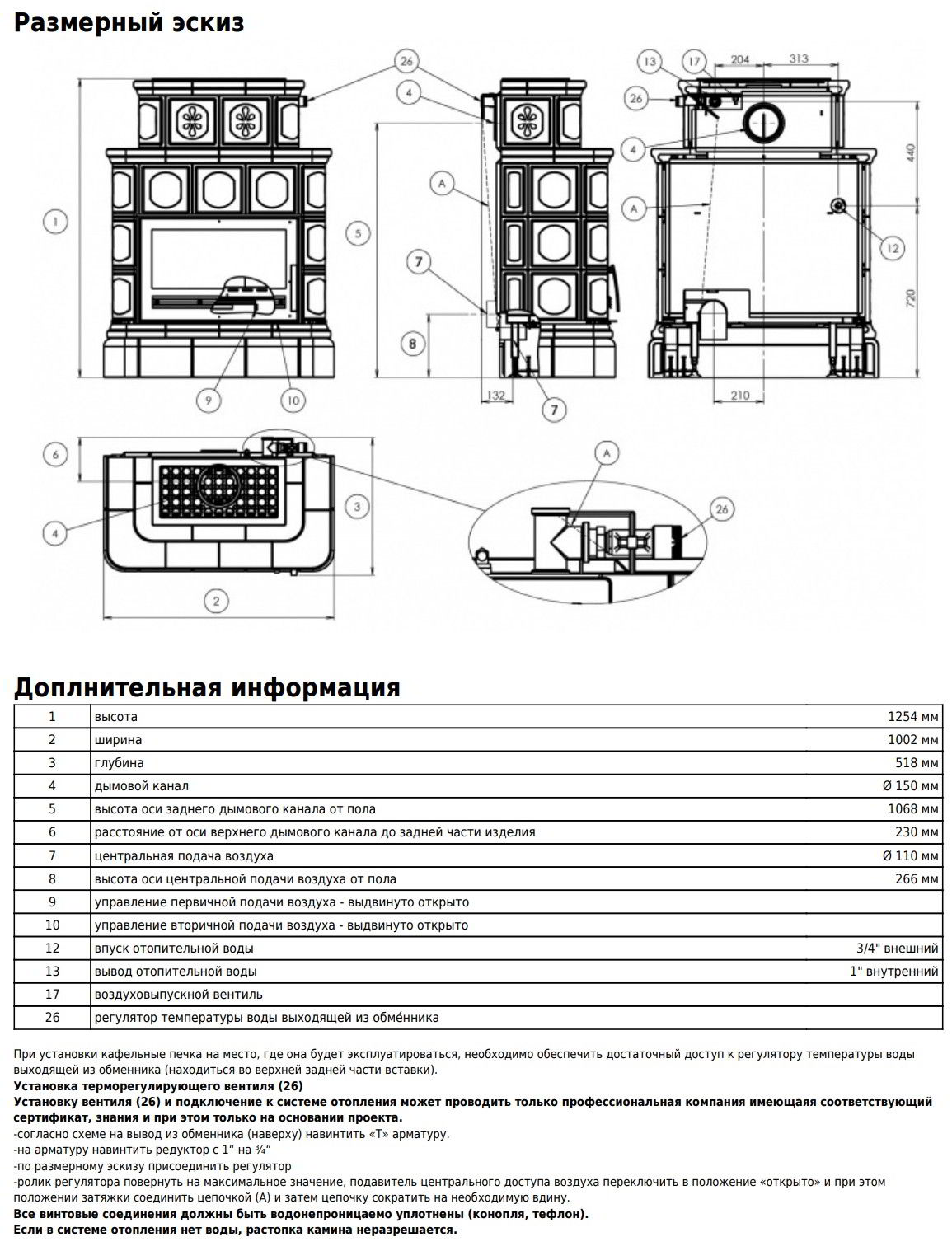 Диаметр дымохода: