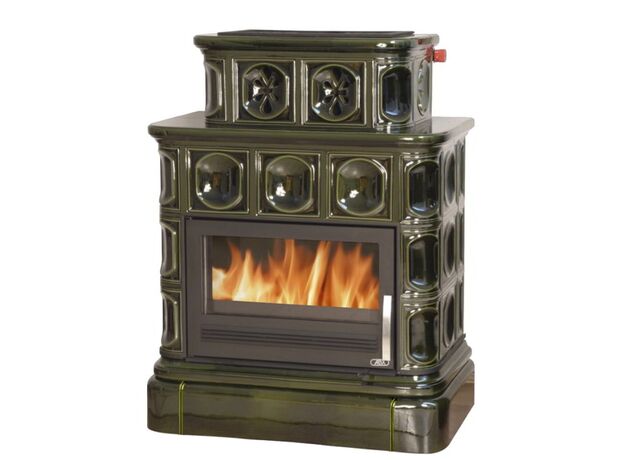 Печь-камин ABX Karelie P зеленая с кафельным цоколем