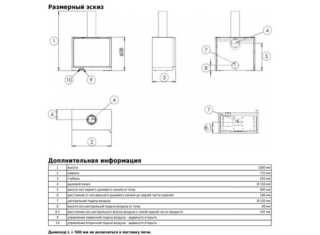 Диаметр дымохода: