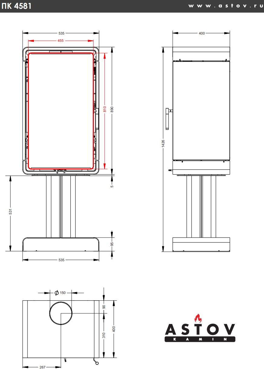 Печь-камин Astov Куб ПК 4581 Кам. на ноге