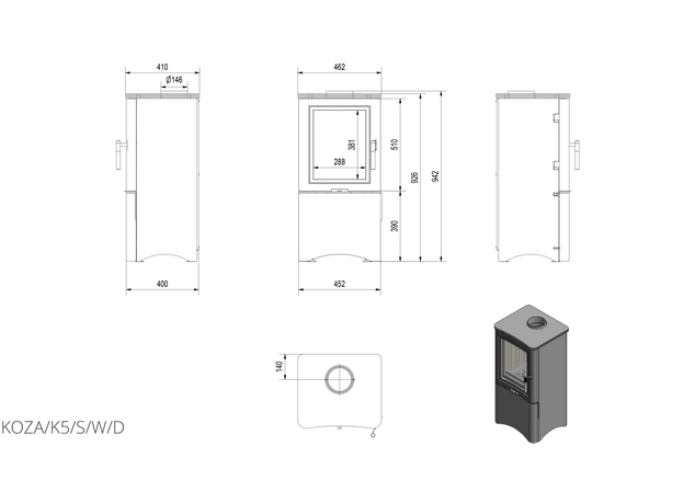 Печь-камин Kratki Koza K5 с нычкой